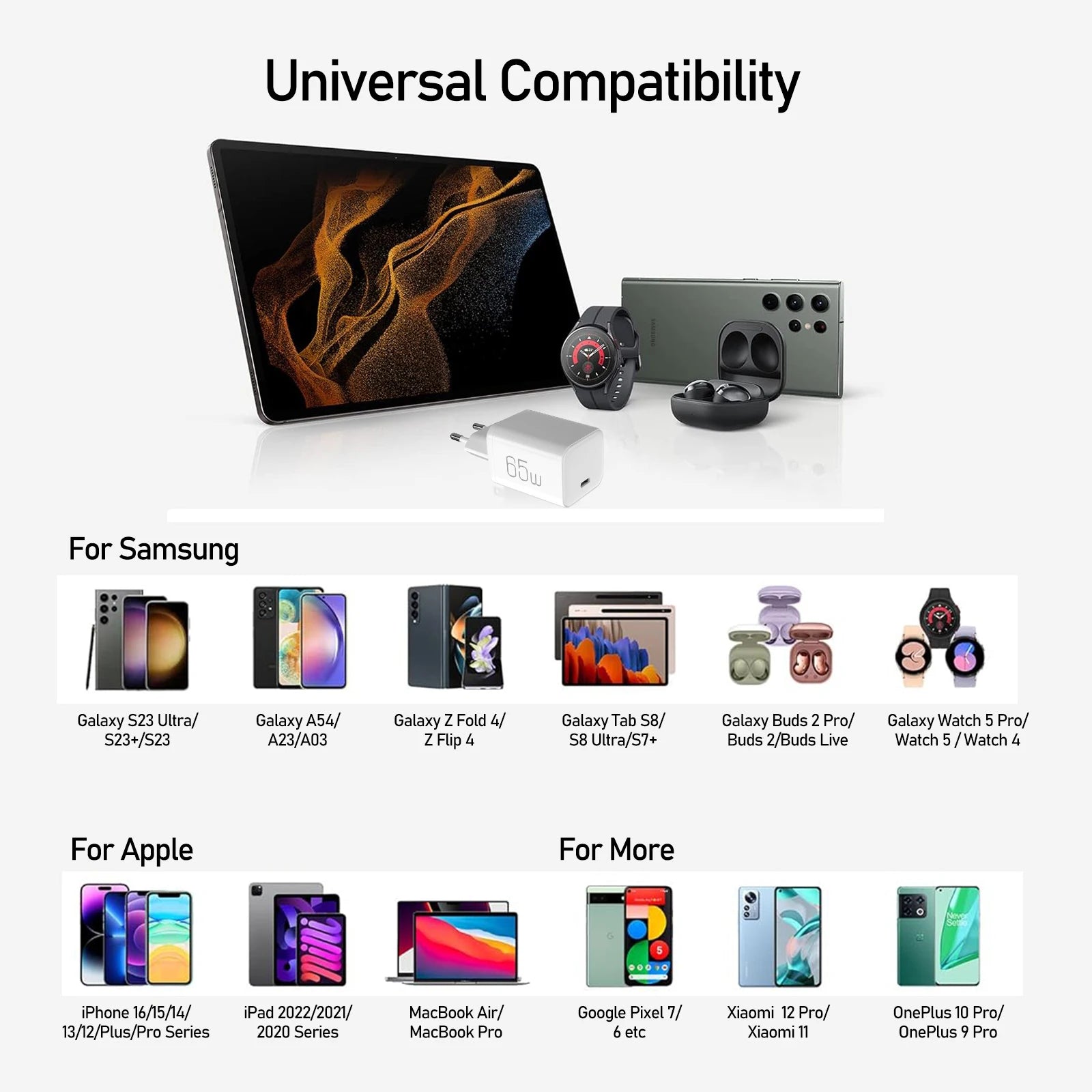 Universal compatibility: iPhone, iPad, Samsung, OnePlus, and more