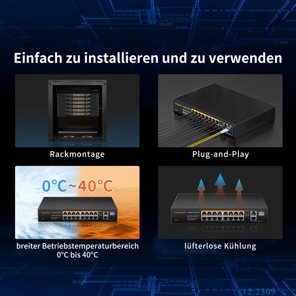 Simplify your network setup with the KeepLiNK 19-Port PoE Switch—powerful, reliable, and built for seamless connectivity.